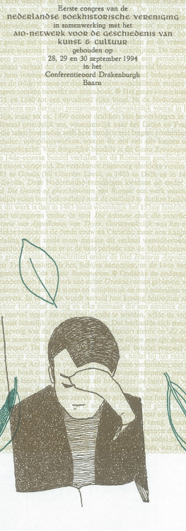 De Nederlandse Boekhistorische Vereniging (NBV) is in 1993 opgericht. Het eerste congres van deze vereniging vond plaats van 28-30 september 1994 en was getiteld: Bladeren in andermans hoofd. Het belangrijkste onderdeel was een internationale forumdiscussie over de (on)mogelijkheden van het vervaardigen van nationale boekhistorische overzichtswerken. De Ammoniet heeft voor dit congres het programmaboek met de hand gezet en gedrukt in een oplage van 275 exemplaren. De vormgeving kwam tot stand in nauwe samenwerking met grafisch kunstenaar Jos van der Zee. (Bibl. 1.31; klik en ga naar p. 111)